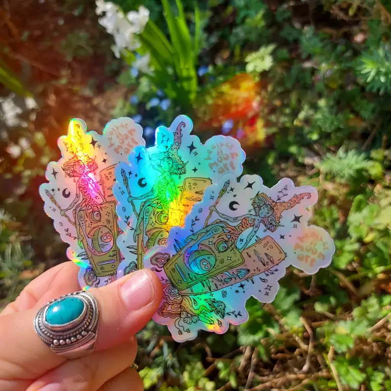 Vinyl, water-proof, scratch-proof and fade resistant quality art stickers in varying finishes including matte/gloss/holographic.